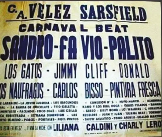 Hay que resaltar algo sobre estos carnavales en clubes de lo que aún no se llamaba AMBA: a pesar de la denominación de “bailes”, se trataba cada vez más de espectáculos o conciertos en los que el público no necesariamente danzaba sino que más bien asumía un rol de espectador, propiamente dicho. Una nota del diario Crónica del 16 de febrero de 1970 deslizaba una mirada crítica del fenómeno: “Bailes que solo han tenido esa denominación y en los que pagaban más iban a ver el show anunciado y presentado que a danzar. En Veléz más de 8.000 personas se apostaban jornada tras jornada y a lo largo de las mismas en una tribuna popular frente al campo de juego futbolístico y observaban y se deleitaban –o no– con un desfile incesante de estrellas de la canción”. Otra información de Crónica, una semana antes, consignaba que el Carnaval de Vélez, donde había cantado Jimmy Cliff, era el de mayor repercusión ese año, con 16.057.500 pesos, seguido del Club Comunicaciones y el Centro Lucense.