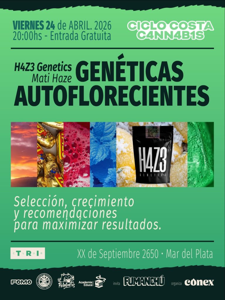 Por otro lado, se presentará la charla “Genéticas autoflorecientes: selección, crecimiento y recomendaciones para maximizar resultados”, a cargo de Mati Haze (H4Z3 Genetics), quien abordará el rol de las genéticas autoflorecientes como base de un cultivo exitoso, con foco en su selección, estabilidad y adaptación al clima argentino.